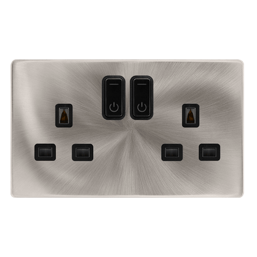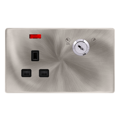• Scolmore SFBS655BK 13A 1 GANG DOUBLE POLE KEY LOCKABLE SOCKET WITH NEON - BRUSHED STEEL COVER PLATE - BLACK INSERT