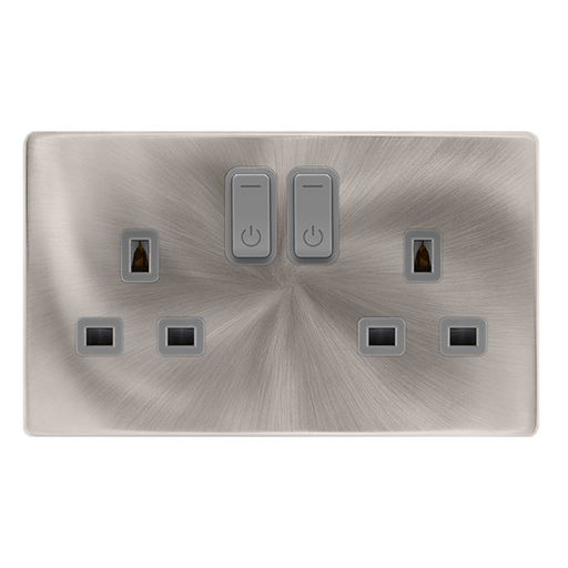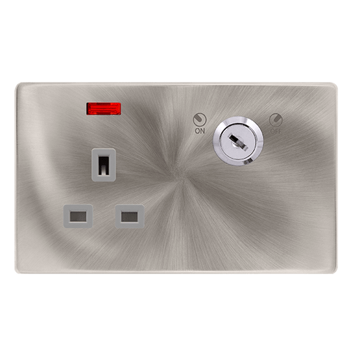 • Scolmore SFBS655GY 13A 1 GANG DOUBLE POLE KEY LOCKABLE SOCKET WITH NEON - BRUSHED STEEL COVER PLATE - GREY INSERT