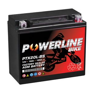 POWERLINE PTX20L-BS AGM MOTORCYCLE BATTERY 12V 18AH