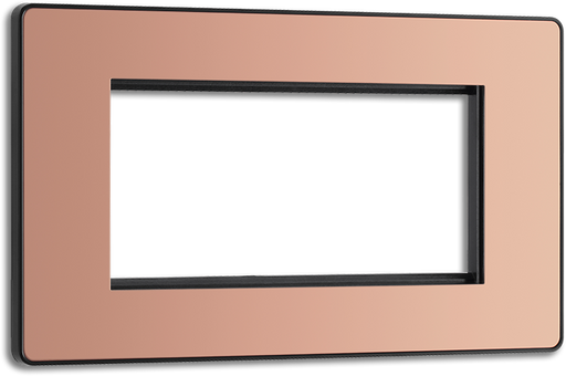 The BG PCDCPEMR4B is part of the BG Evolve Screwless Polished Copper Range.EVOLVE POLISHED COPPER (BLACK) QUADRUPLE RECTANGULAR FRONT PLATE (100 X 50)