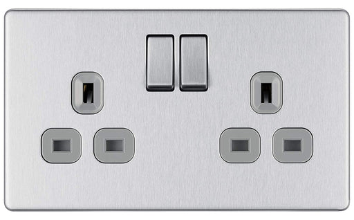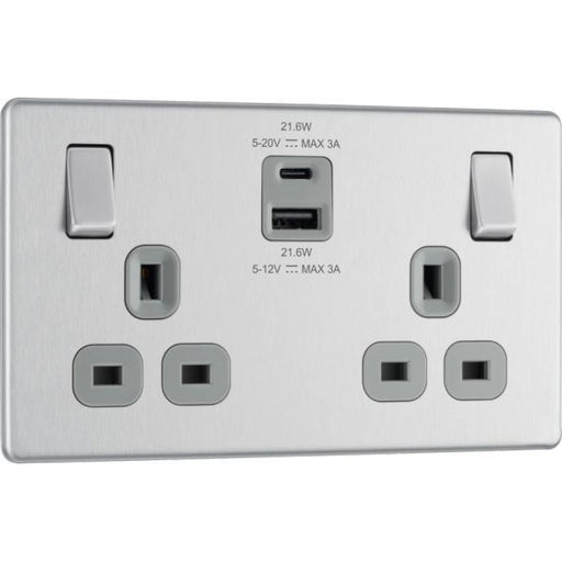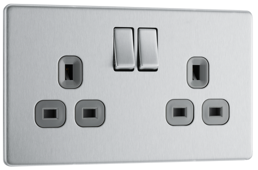 View full detailsBG Electrical FBS21U2G Screwless Flat Plate Brushed Stainless Steel 1 Gang Single 13A Switched Socket with Grey Insert and 2 x USB Ports 2.1A Twin...