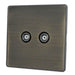 Caradok Screwless Premium Vintage Brass Metal 2 Gang TV Coax Socket Point