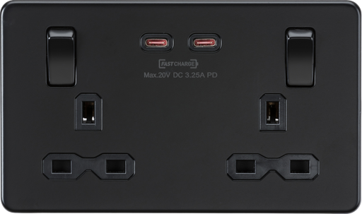 [message]The Knightsbridge matt black switches and sockets, with an ultra slim profile design, with the option of contrasting chrome, or matching metal rocker switches. The screwless design features and easy clip on high quality metal cover with built in moisture gasket to prevent any transfer of moisture from wall to plate ensuring the front plate finish remains untarnished. Constructed from premium grade components. Manufactured to the latest British Safety Standards. Backed up with our 15 year guarantee....