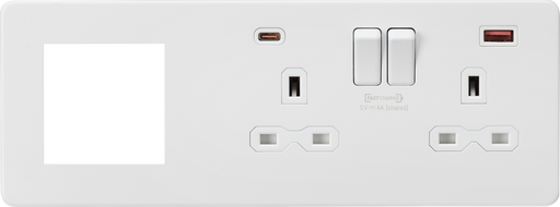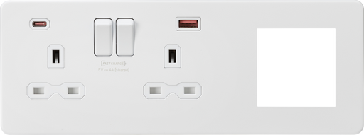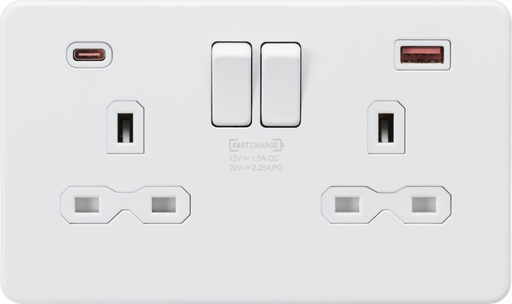 • Knightsbridge Screwless Matt White SFR9945MW 13A 2G DP Switched Socket with Dual USB A+C [45W FASTCHARGE] - Matt White