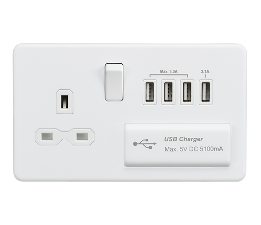• Knightsbridge SFR7USB4MW Screwless 13A switched socket with quad USB charger - Matt white