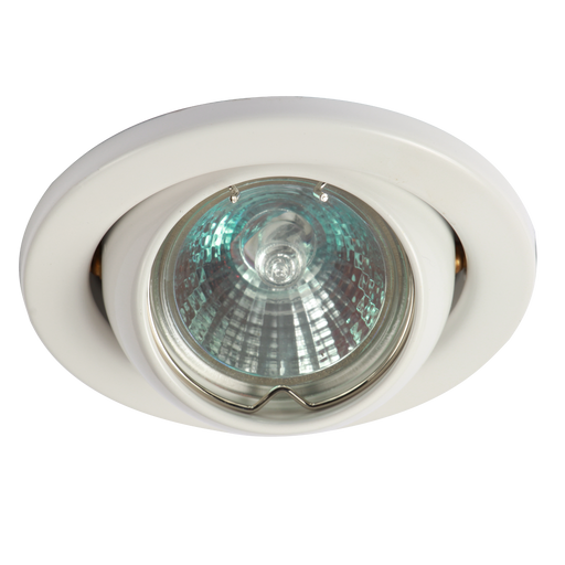 View full detailsIP20 Low Voltage Eyeball Downlight, White finish. GU5.3 12v 50 Watt max lampholder. MR16 12v 50 Watt lamp (not supplied with fitting - product code...