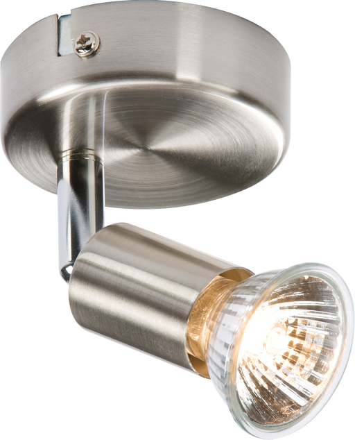 View full detailsSingle arm GU10 Halogen adjustable Spot light, finished in brushed chrome, ideal for wall or ceiling mounting. Details Lamp Type: Supplied with 1...