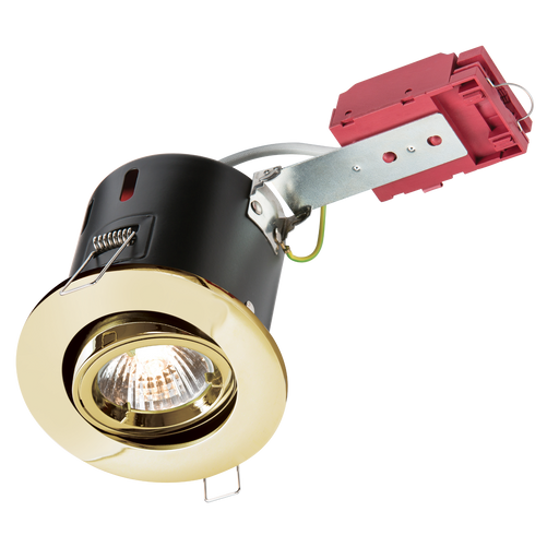 IP20 Die-Cast GU10 Tilt Insulation Compatible Fire rated Downlight, Brass finish. GU10 230v 50w max lamp.Twist and lock front ring for easy lamp re...