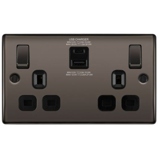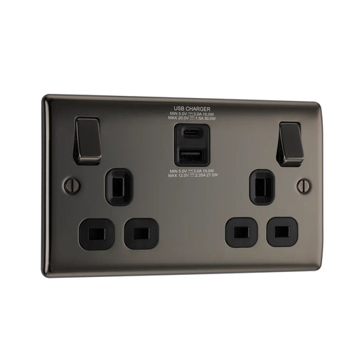 • BG Nexus NBN22UAC30B Black Nickel 13A Switched USB Socket with Type A & Type C 4.2A - DISCONTINUED
