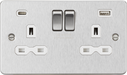 Knightsbridge FPR9940BCW 13A 2G SP Switched Socket with Dual USB A+C (5V DC 4.0A shared) - Brushed Chrome with White Insert