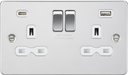 Knightsbridge FPR9940PCW 13A 2G SP Switched Socket with Dual USB A+C (5V DC 4.0A shared) - Polished Chrome with White Insert