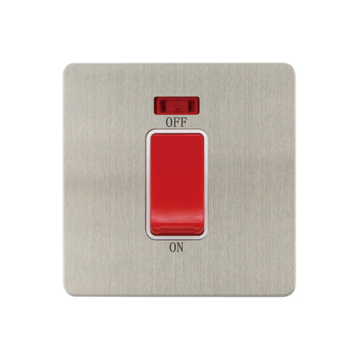 1G 45A DP Switch c/w Neon Brushed Chrome, White Insert
