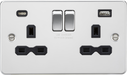 Knightsbridge FPR9940PC 13A 2G SP Switched Socket with Dual USB A+C (5V DC 4.0A shared) - Polished Chrome with Black Insert