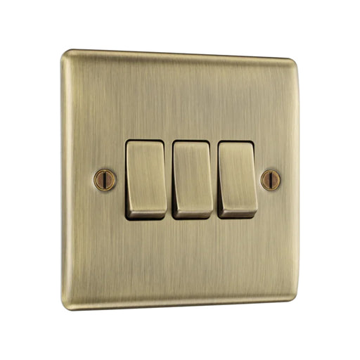 • BG Nexus NAB43 Metal Antique Brass 10AX 3 Gang 2 Way Switch