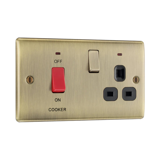 • BG Nexus NAB70B Metal Antique Brass 45A Cooker Socket Switch Unit with Neon
