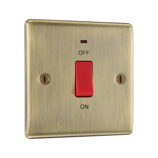 • BG Nexus NAB74 Metal Antique Brass 45A Double Pole Cooker Switch with Neon