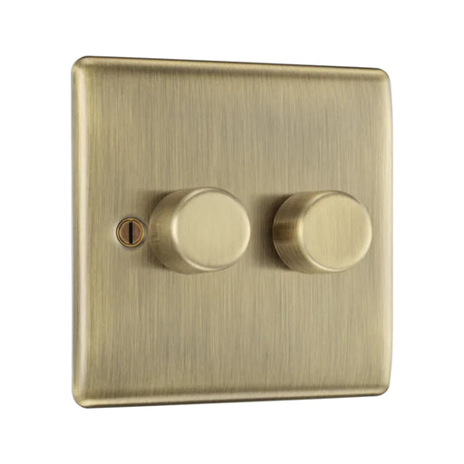 • BG Nexus NAB82 Metal Antique Brass Single 2 Gang 2 Way LED Dimmer Switch