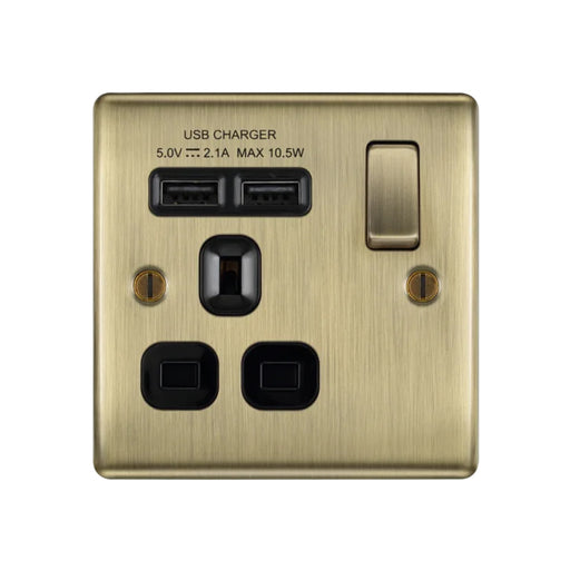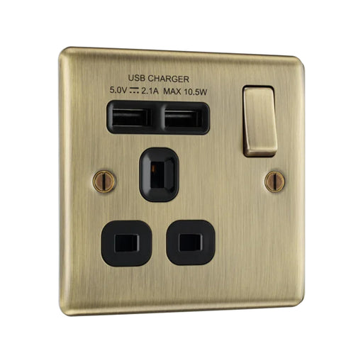 • BG Nexus NAB21UAC18B Antique Brass 13A 1G Socket with Black Insert and 2 x USB -18W
