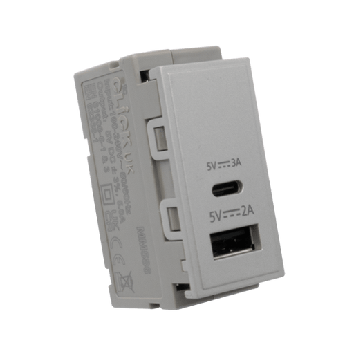 • Scolmore MM586GY DUAL USB MODULE 2A TYPE A 3A TYPE C GY