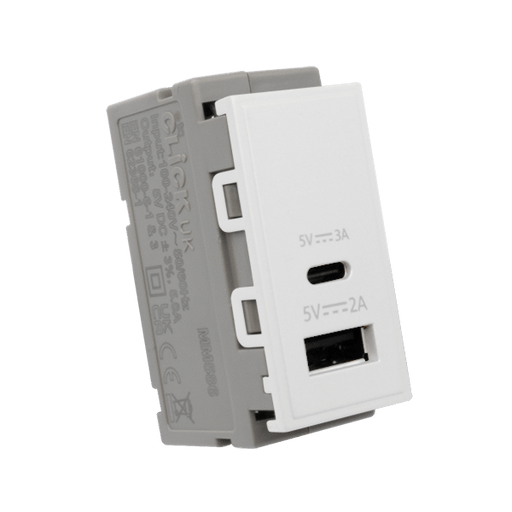 • Scolmore MM586WH DUAL USB MODULE 2A TYPE A 3A TYPE C WH