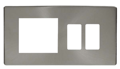 Scolmore SCP31102SS Hotel Accessory Plate - 2 Gang Gridpro Frontplate With Twin New Media Aperture Cover Plate
