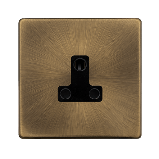 • Scolmore SFAB038BK 5A ROUND PIN SOCKET - ANTIQUE BRASS COVER PLATE - BLACK INSERT