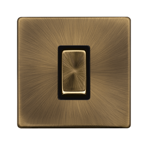 • Scolmore SFAB425BK 10AX INGOT 1 GANG INTERMEDIATE SWITCH - ANTIQUE BRASS COVER PLATE - BLACK INSERT