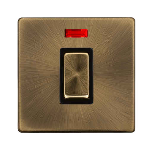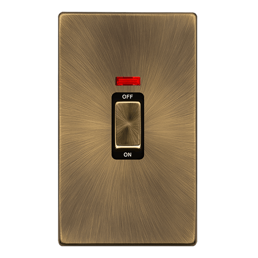 [message]Scolmore SFAB501BK 50A INGOT 1 GANG DOUBLE POLE SWITCH WITH NEON - ANTIQUE BRASS COVER PLATE - BLACK INSERT