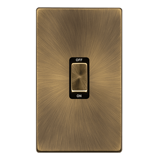 Scolmore SFAB522BK 20A INGOT DOUBLE POLE SWITCH WITH FLEX OUTLET - ANTIQUE BRASS COVER PLATE - BLACK INSERT