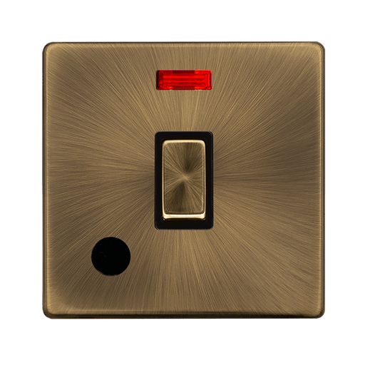 Scolmore SFAB523BK 20A INGOT DOUBLE POLE SWITCH WITH NEON & FLEX OUTLET - ANTIQUE BRASS COVER PLATE - BLACK INSERT