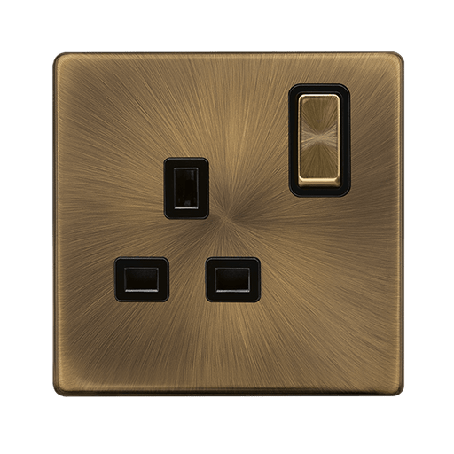 Scolmore SFAB535BK 13A INGOT 1 GANG DP SWITCHED SOCKET - ANTIQUE BRASS COVER PLATE - BLACK INSERT
