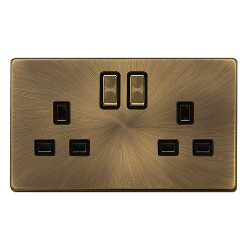 Scolmore SFAB536BK 13A INGOT 2 GANG DP SWITCHED SOCKET - ANTIQUE BRASS COVER PLATE - BLACK INSERT