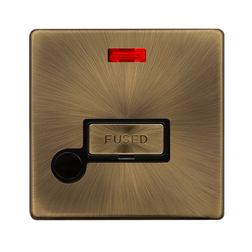 Scolmore SFAB553BK 13A INGOT FUSED CONNECTION UNIT WITH NEON & OPTIONAL FLEX OUTLET - ANTIQUE BRASS COVER PLATE - BLACK INSERT