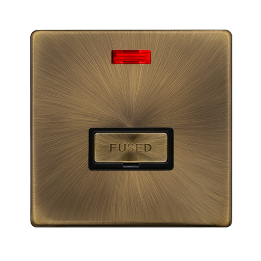 Scolmore SFAB753BK 13A INGOT FUSED CONNECTION UNIT WITH NEON - ANTIQUE BRASS COVER PLATE - BLACK INSERT