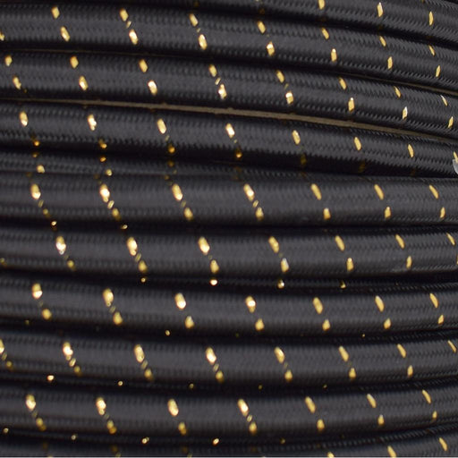 Lampfix 01028 Round Braided Flex 3 core 0.75mm Black with Gold Fleck, mtr