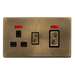 Scolmore SFAB505BK 50A INGOT DOUBLE POLE SWITCH WITH 13A DOUBLE POLE SWITCHED SOCKET & NEON - ANTIQUE BRASS COVER PLATE - BLACK INSERT