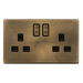 Scolmore SFAB536BK 13A INGOT 2 GANG DP SWITCHED SOCKET - ANTIQUE BRASS COVER PLATE - BLACK INSERT