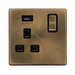 Scolmore SFAB571UBK 13A INGOT 1 GANG SWITCHED SOCKET WITH 2.1A USB OUTLET - ANTIQUE BRASS COVER PLATE - BLACK INSERT