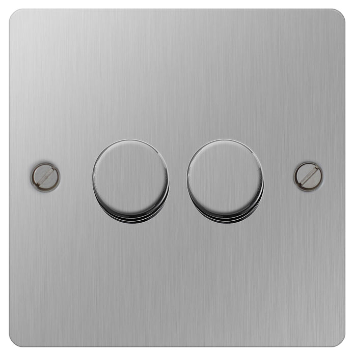 BG SBS82 Flat Plate Brushed Steel 400W 2 Way - Push 2 Gang Dimmer