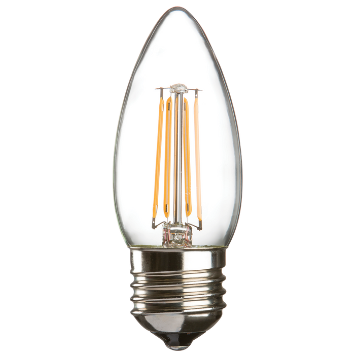 This 4W ES(E27) Edison screw clear candle lamp utilises LED filament technology and is almost identical in appearance to a classic incandescent light bulb.åÊ Producing a warm white (3000K) 360 degree light, cool burning and long life, this lamp is ultra-efficient and reduces maintenance costs. Average life expectancy of 20,000 hours, 2 year warranty, 420 lumens (similar to a 40W incandescent). Non -dimmable.