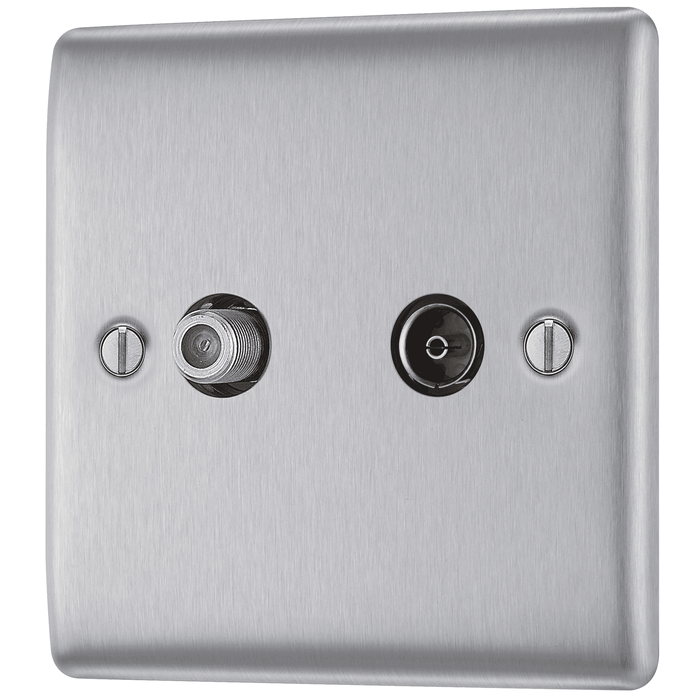 BG Nexus NBS65 Brushed Steel 2G Satellite and Co-Axial Socket